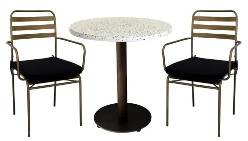 Couleur marketing : pied bronze, plareau granito blanc