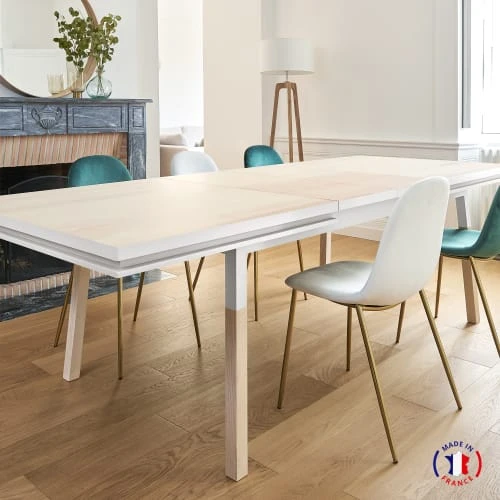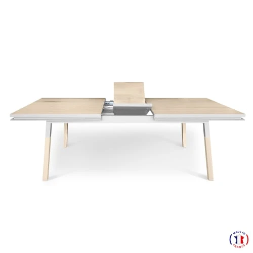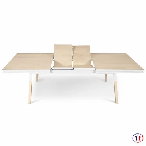 – Cette table contient 2 rallonges intégrées de 40 cm chacune.