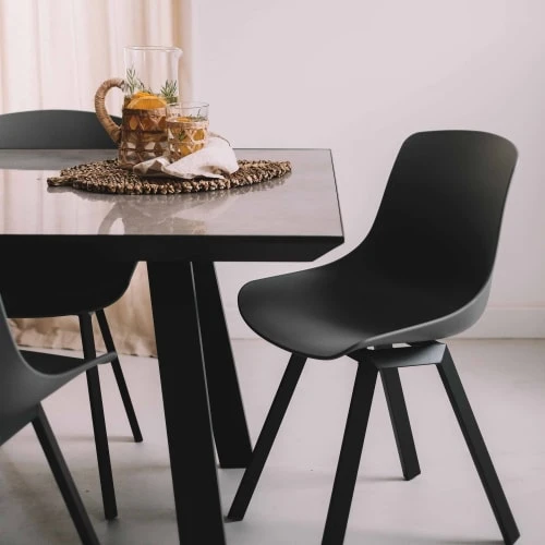 Hellin Tables à Manger Table De Salle à Manger Rectangulaire En Acacia Et Métal Noir L200