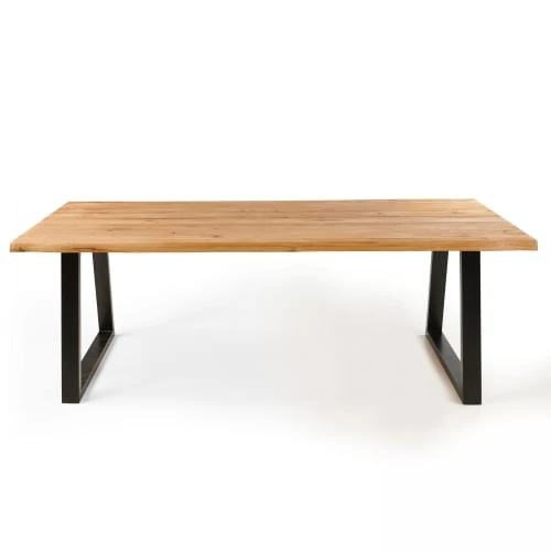 Hellin Tables à Manger Table De Salle à Manger Rectangulaire En Acacia Et Métal Noir L200