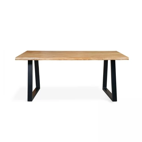 Hellin Tables à Manger Table De Salle à Manger Rectangulaire En Acacia Et Métal Noir L180