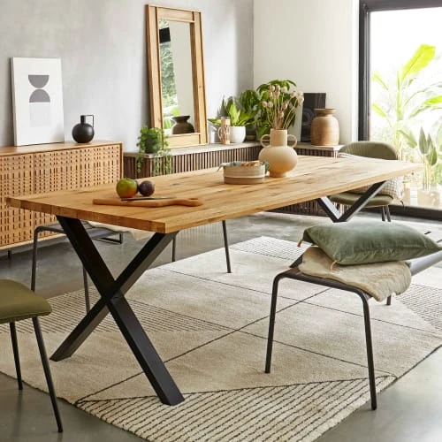 Angel Cerda Tables à Manger Table à Manger En Verre Trempé Pieds Croisés En Acier D150