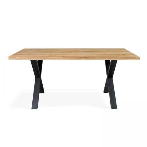 Hellin Tables à Manger Table De Salle à Manger Rectangulaire En Acacia Et Métal Noir L180