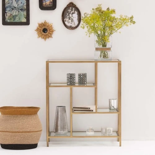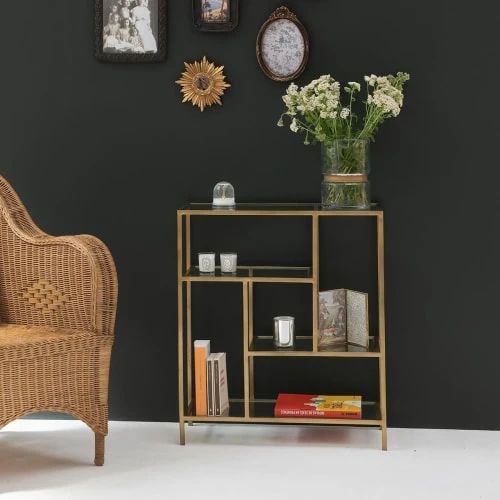 Meubles & Design Consoles Et Drapiers Console 3 Plateaux Effet Marbre Noir