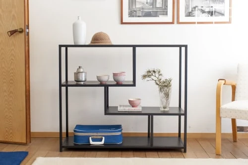 Meubles & Design Consoles Et Drapiers Console 3 Plateaux Effet Marbre Noir