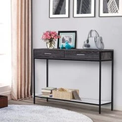 Homcom Consoles Et Drapiers Console 2 Tiroirs étagère Gris