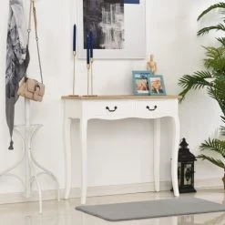 Homcom Consoles Et Drapiers Console Style Table De Drapier Shabby Chic 2 Tiroirs Blanc