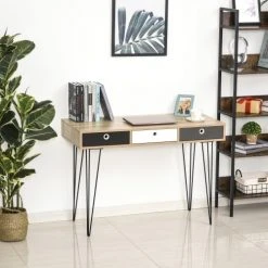 Homcom Consoles Et Drapiers Console Design 2 Tiroirs Métal Aspect Bois Chêne Clair Et Noir