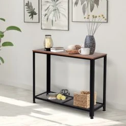 Homcom Consoles Et Drapiers Table Console Vintage Industriel Pieds Réglables