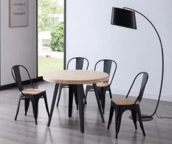 Mathi Design Tables à Manger Table De Repas Ronde Extensible 6 Personnes En Bois Et Acier Noir