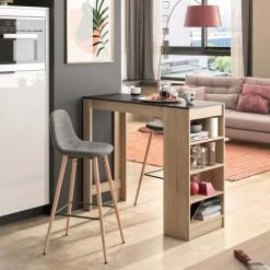 TEMAHOME Tables Ă Manger Table Et Chaises Effet Bois ChĂȘne Naturel Et Noir – Gris Clair