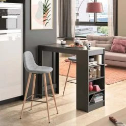 TEMAHOME Tables Ă Manger Table Et Chaises Effet Bois Noir Et BĂ©ton – Gris Anthracite
