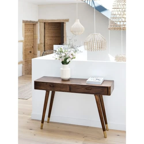 L’essence de bois utilisé pour la fabrication de cette console est le Manguier. La couleur peut varier d’un produit à un autre car chaque planche en bois massif est unique et dépend de multiples facteurs pouvant influer sur le coloris final (noeuds, plan de coupe, séchage…).
