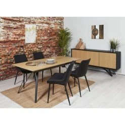ATHM DESIGN Tables à Manger Table De Repas Marron Plateau Bois Recyclé Pieds Métal Noir
