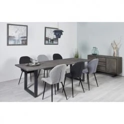ATHM DESIGN Tables à Manger Table De Repas Gris Plateau Acacia Massif Pieds Métal 180x90cm