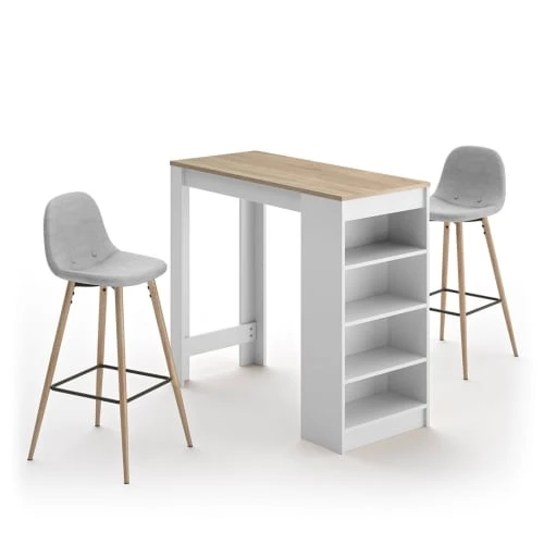 Animez votre intérieur avec cette table-bar ou îlot central et ses chaises hautes tapissées conçues pour vos moments de partage, en famille ou entre amis.