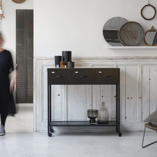 Calicosy Consoles Et Drapiers Console Industrielle 2 Tiroirs L100 Cm – Décor Bois Clair