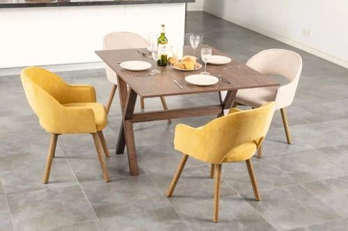 Dans un style scandinave très tendance, cette table de salle à manger aux tons neutres bois, ajoutera du charme et de la luminosité à votre pièce. Les pieds ajoutent de la modernité et font la touche industrielle qui donne toute son originalité à cette table.