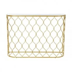 Wadiga Consoles Et Drapiers Console Demi-lune En Métal Doré Et Plateau Miroir 110x32x78cm