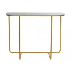 Wadiga Consoles Et Drapiers Console En Métal Doré Et Plateau En Marbre Blanc 98x35x77cm