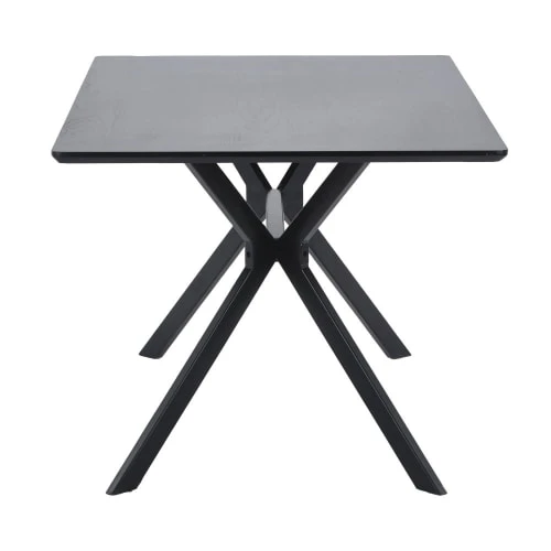 Hellin Tables à Manger Table De Salle à Manger Rectangulaire En Acacia Et Métal Noir L180