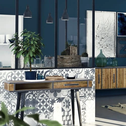 Calicosy Consoles Et Drapiers Console Industrielle 2 Tiroirs L100 Cm – Décor Bois Clair