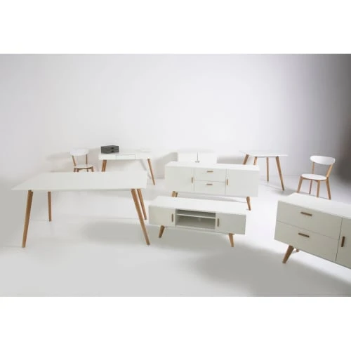 Urban Meuble Tables à Manger Table à Manger Ronde Style Scandinave Blanc/Chêne Dia.100CM